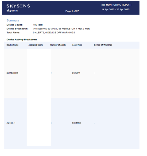 **In addition to existing types, Skysens Team can add new report types depending on user requests.For inquiries related to new reporting requirements, please contact.**
